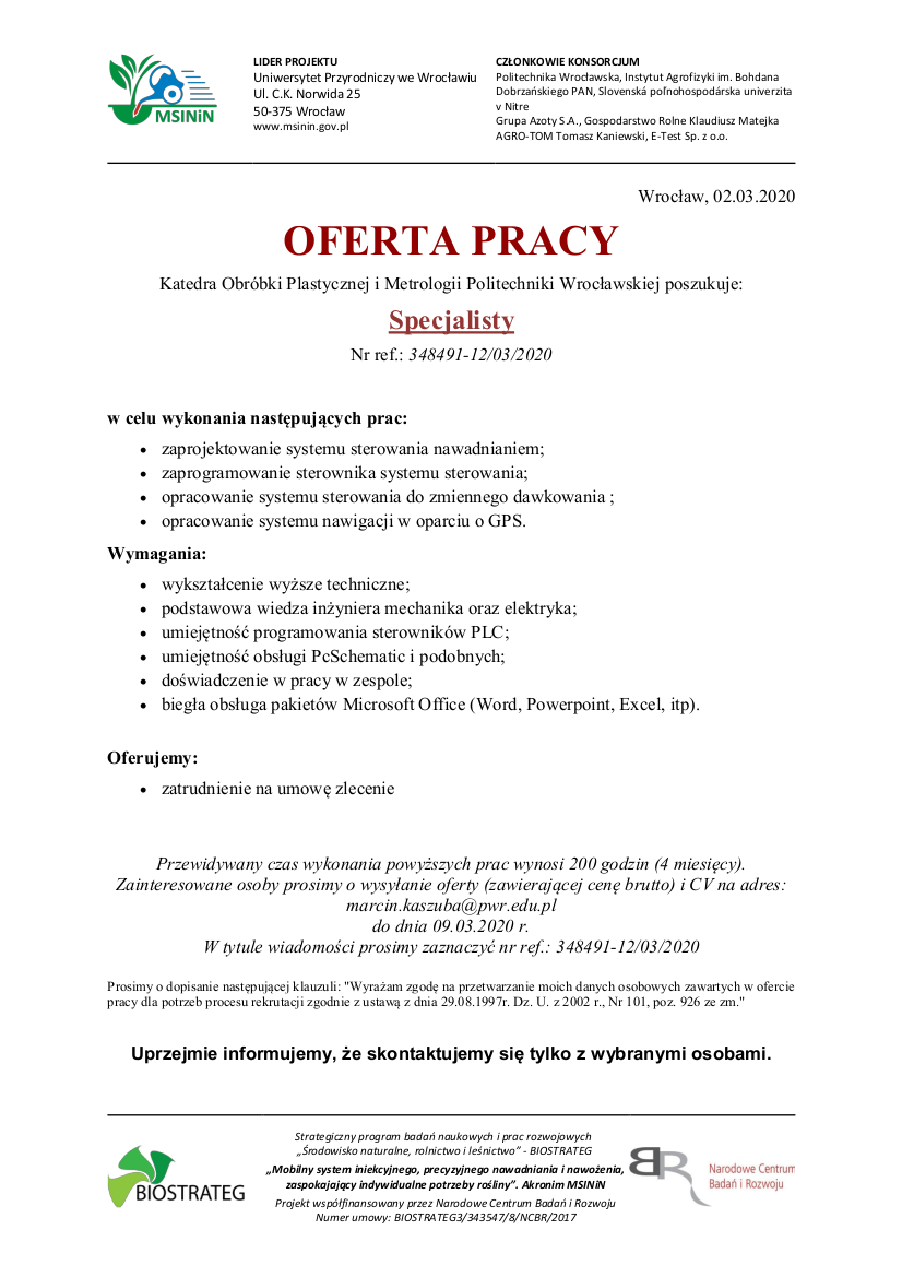Specjalista - Nr ref.: K60W10D07-02/06/2020
