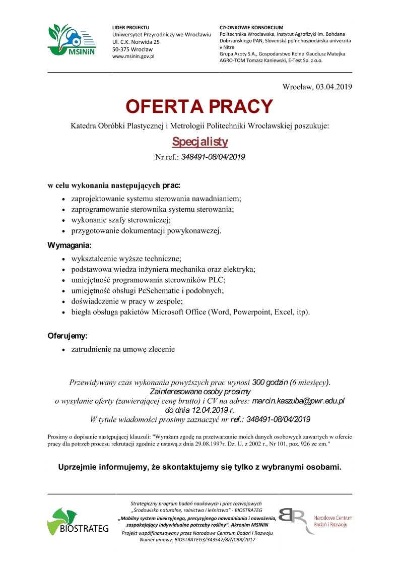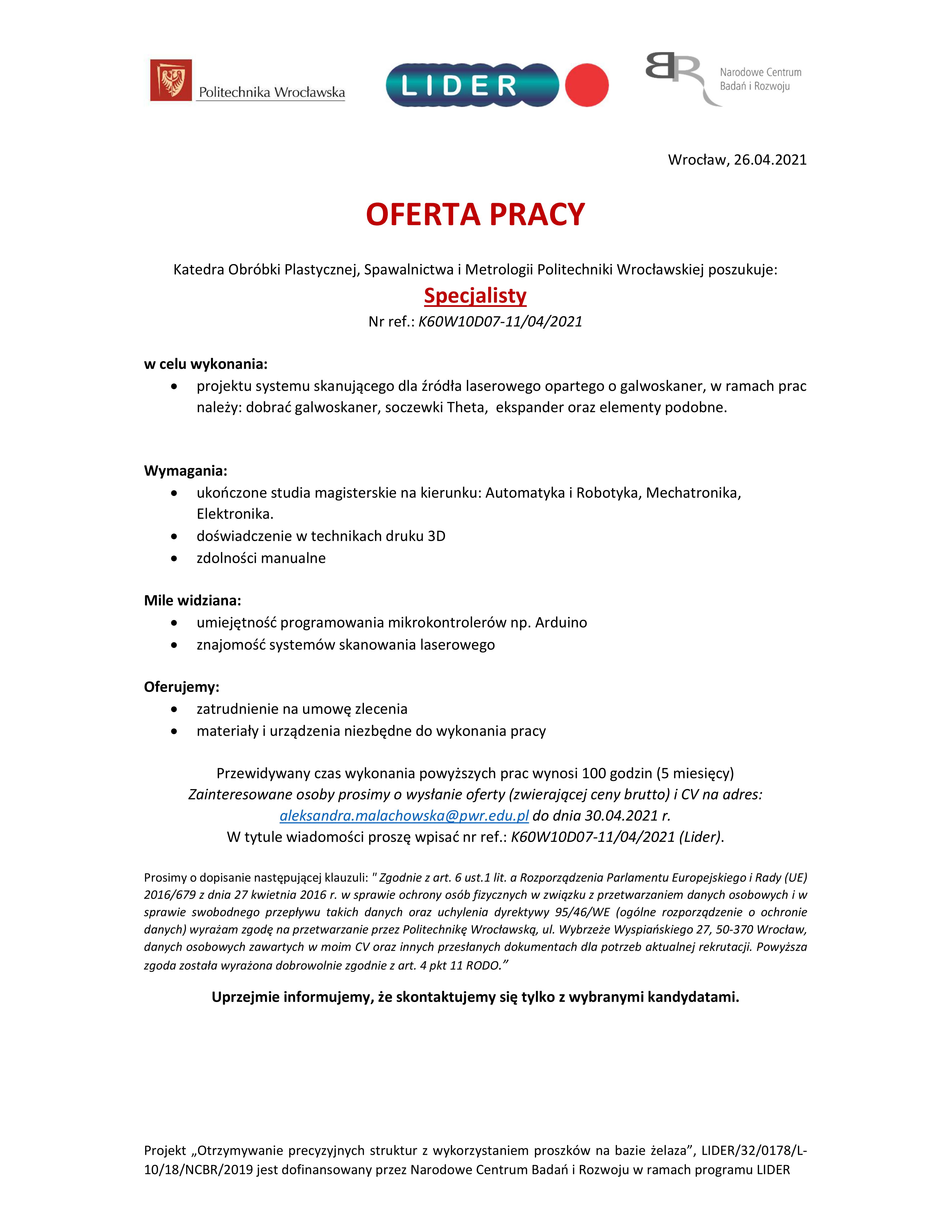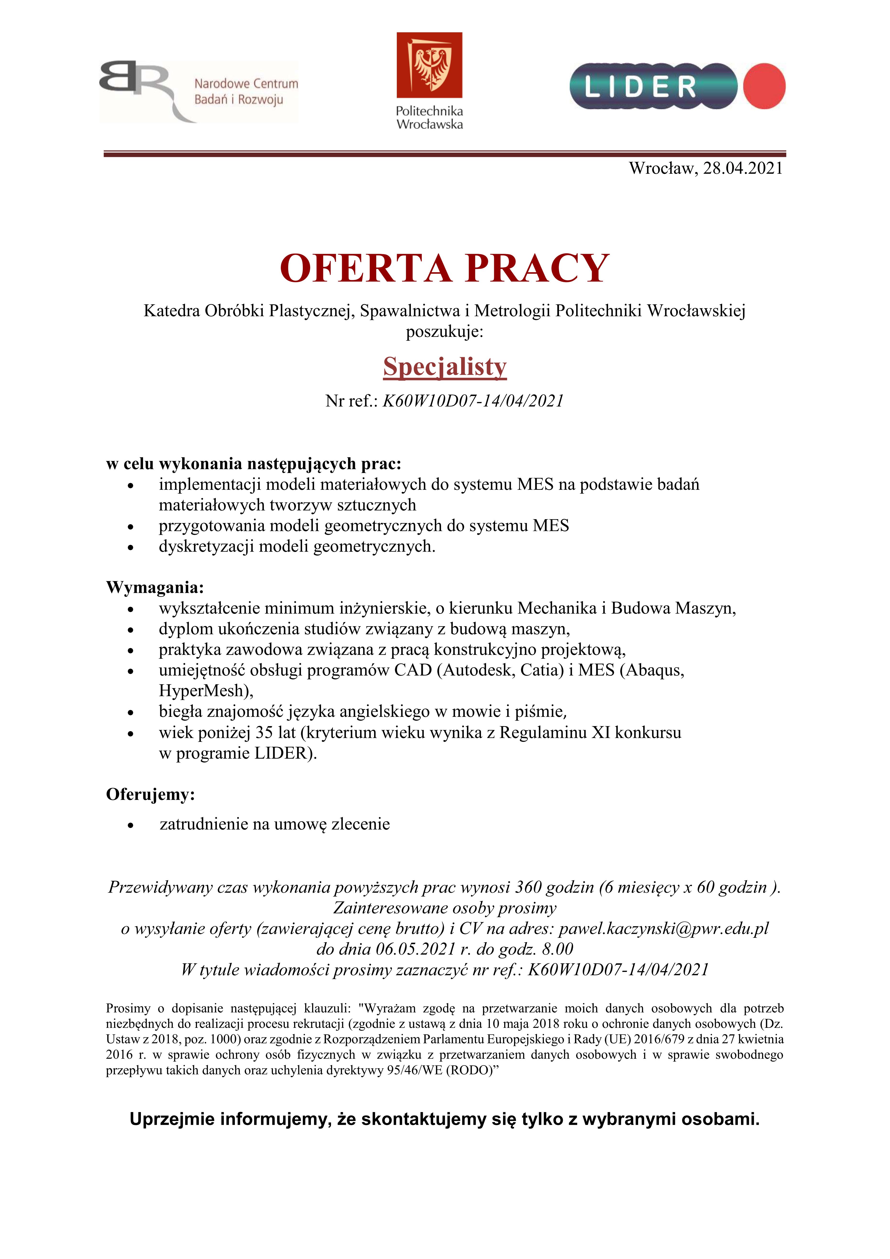 Specjalista - Nr ref.: K60W10D07-14/04/2021