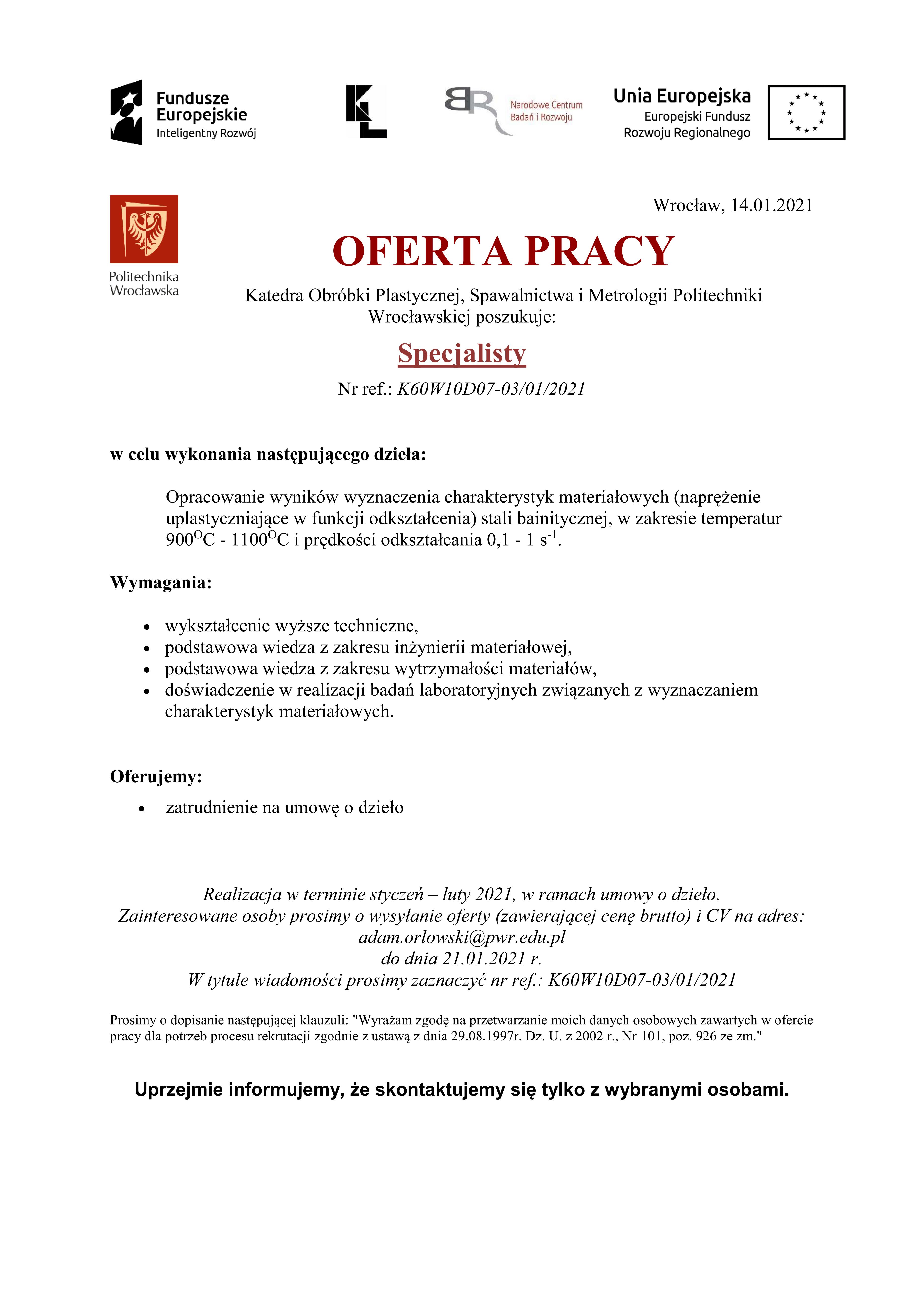 Specjalista - Nr ref.: K60W10D07-01/01/2021