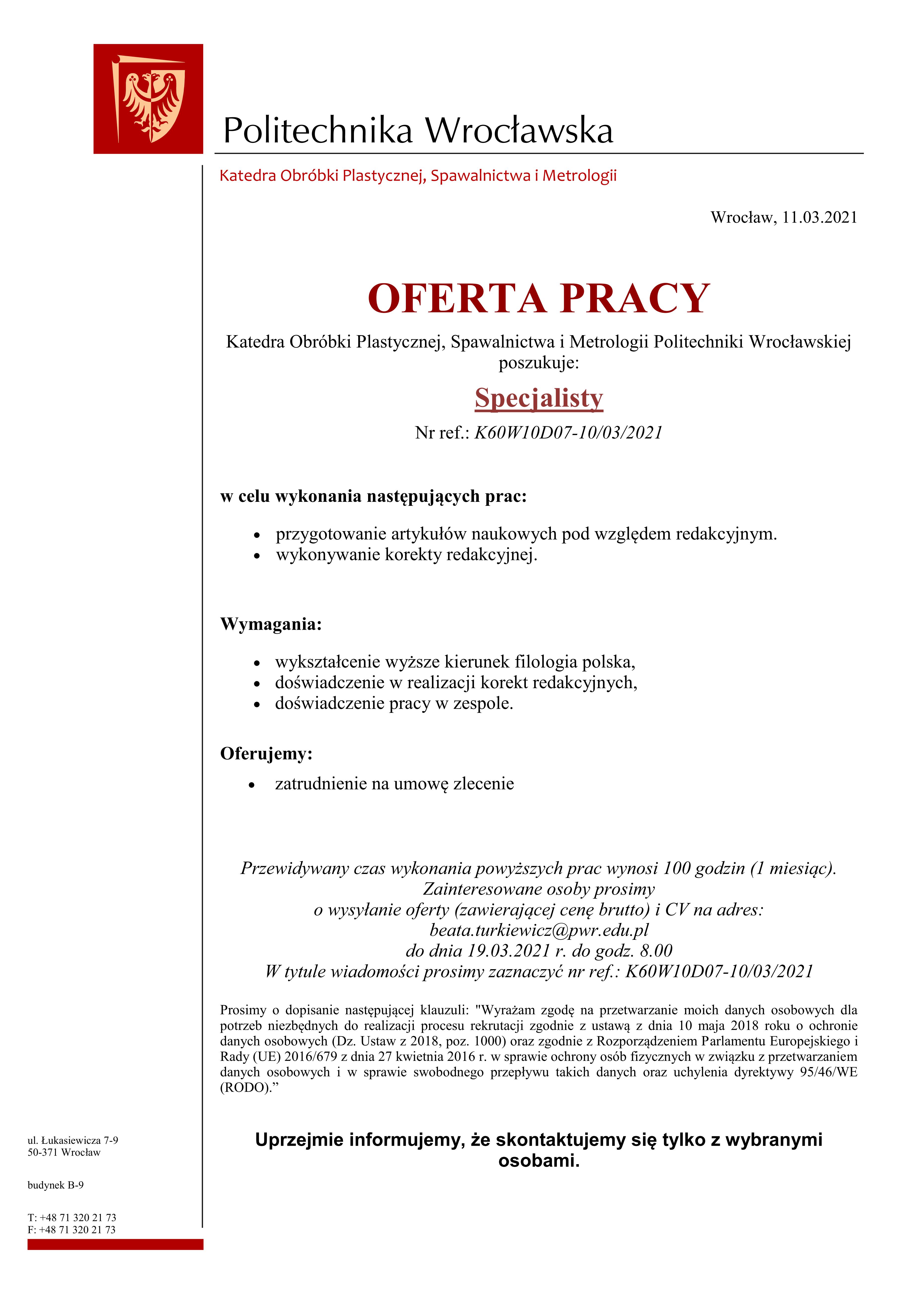 Specjalista - Nr ref.: K60W10D07-10/03/2021