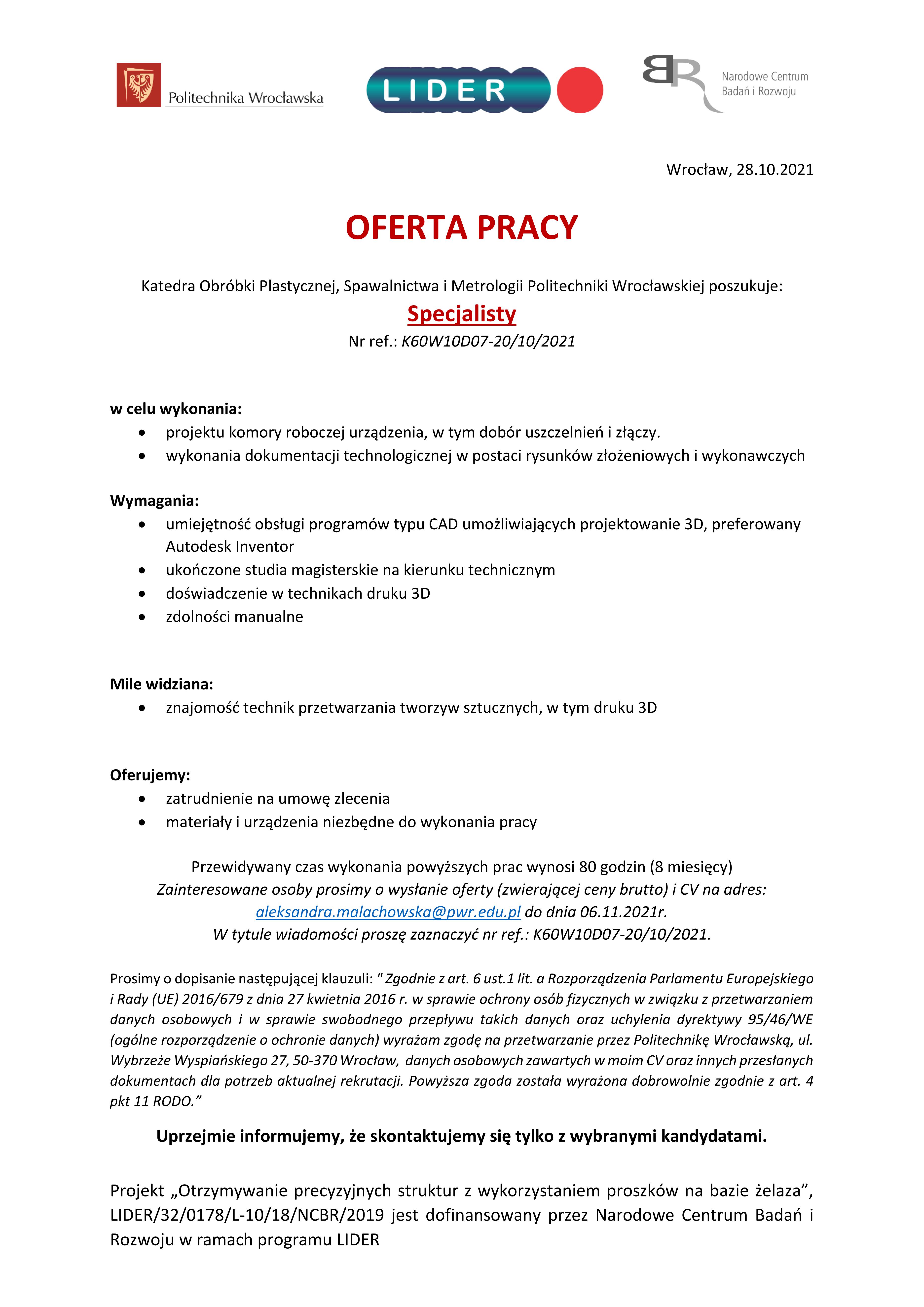 Specjalista - Nr ref.: K60W10D07-20/10/2021