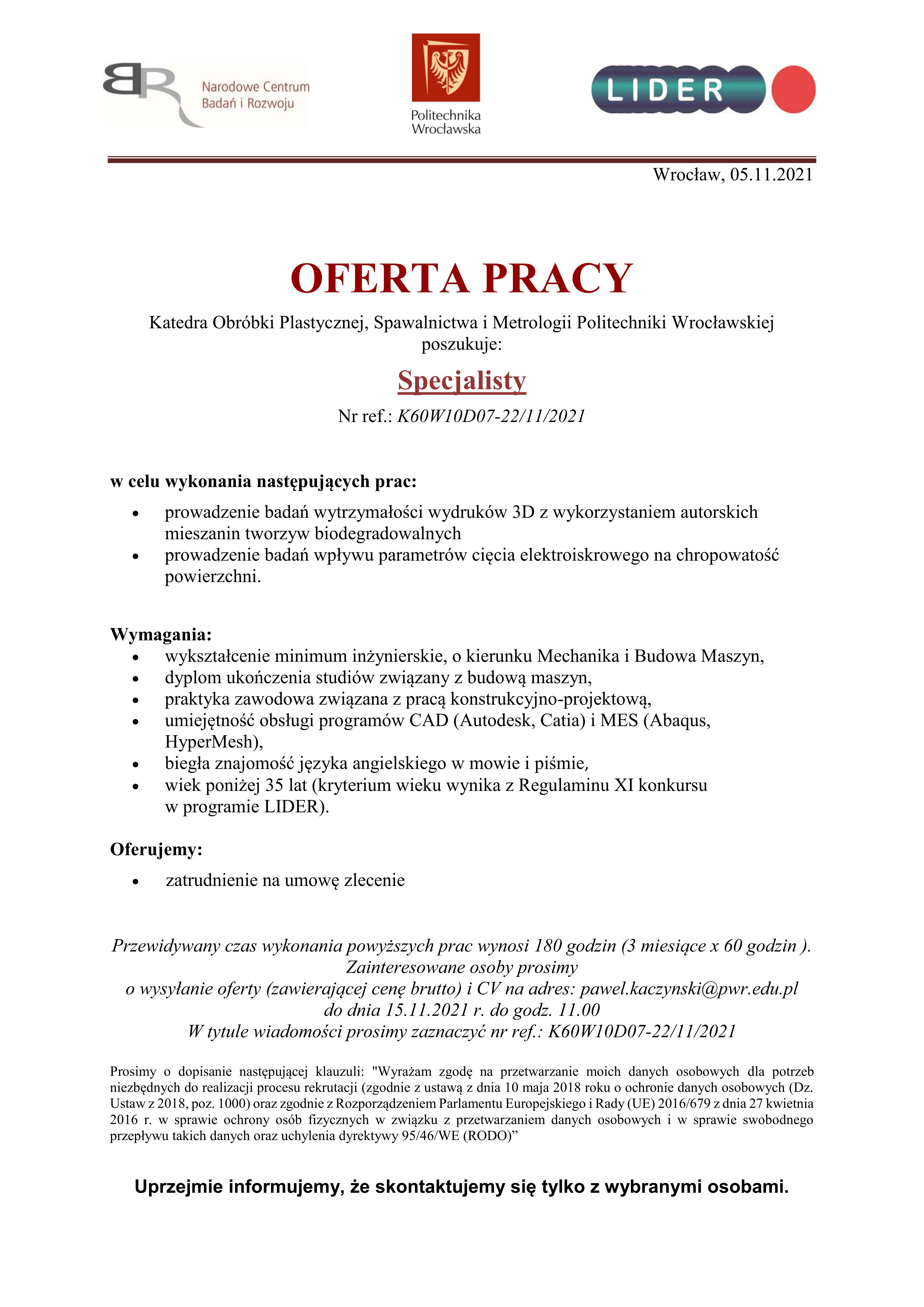 Specjalista - Nr ref.: K60W10D07-22/11/2021