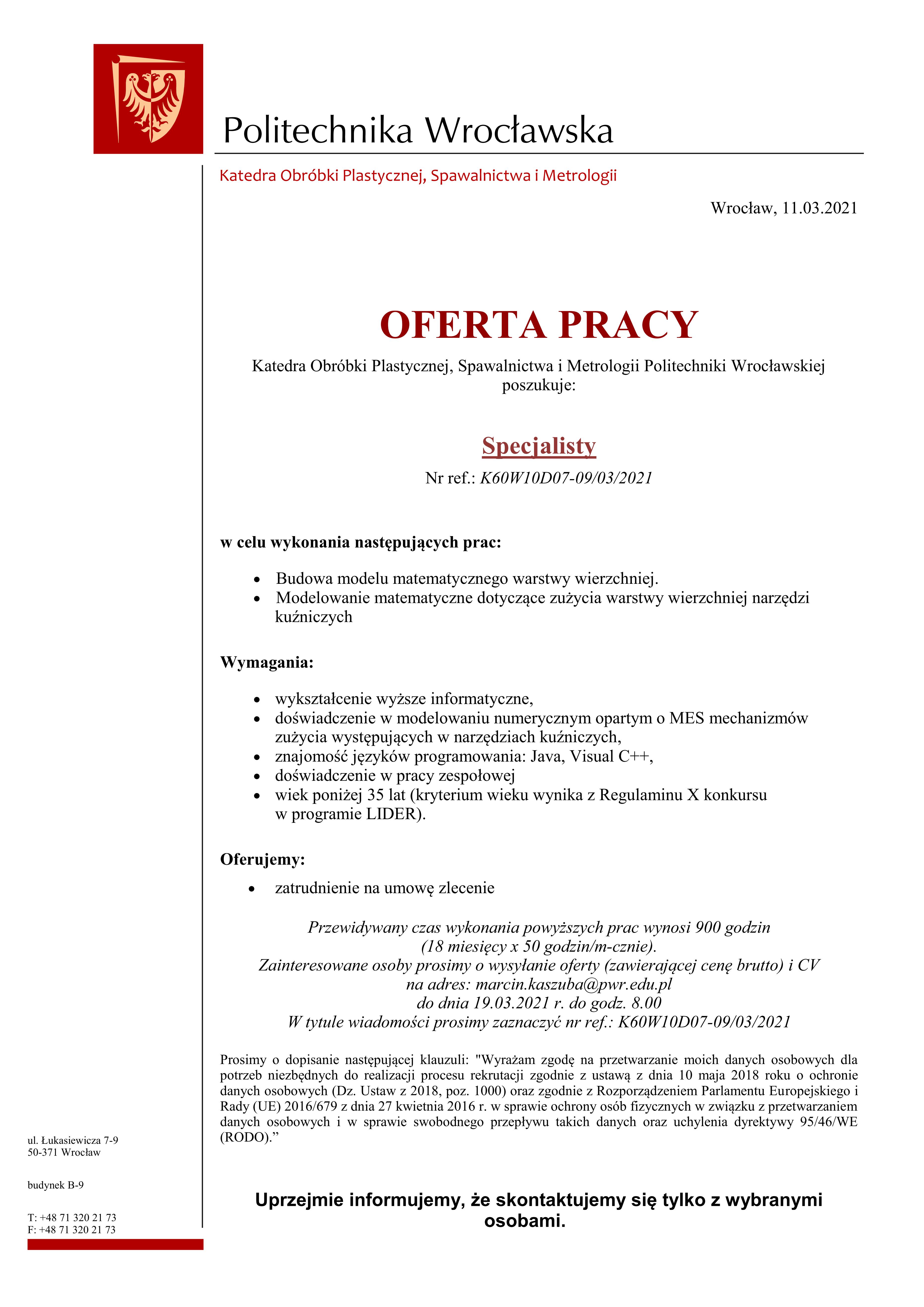 Specjalista - Nr ref.: K60W10D07-09/03/2021