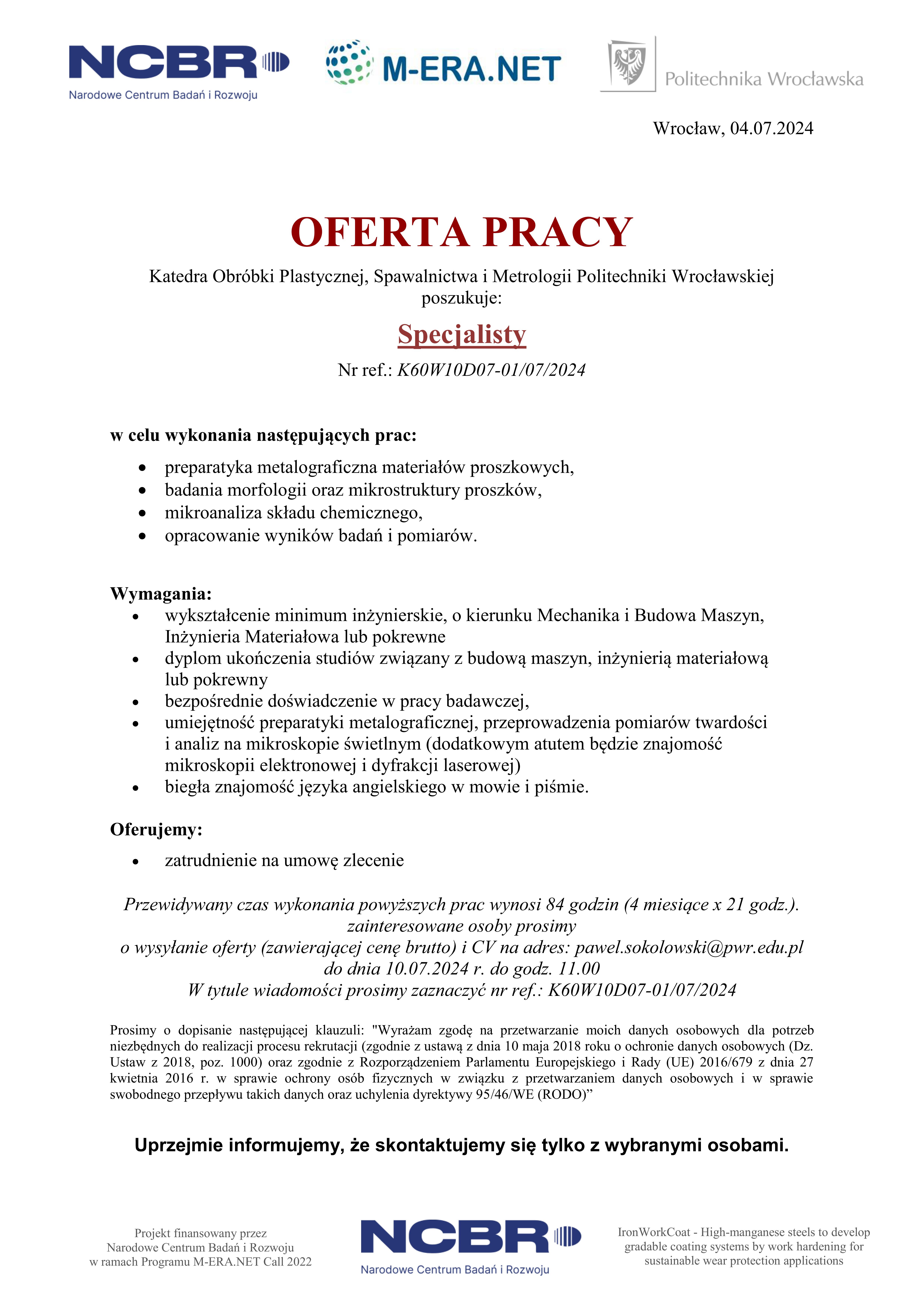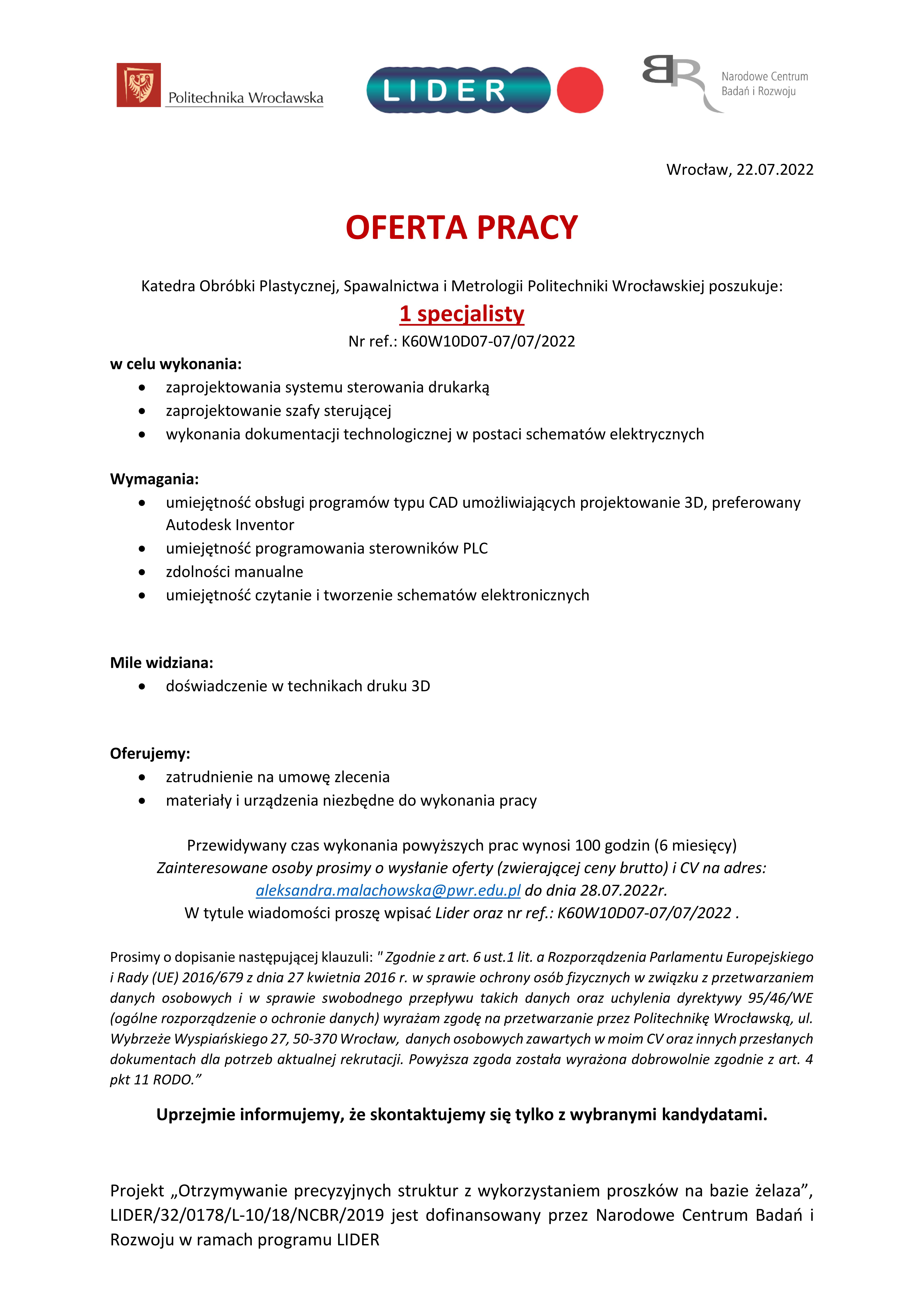 Specjalista - Nr ref.: K60W10D07-07/07/2022