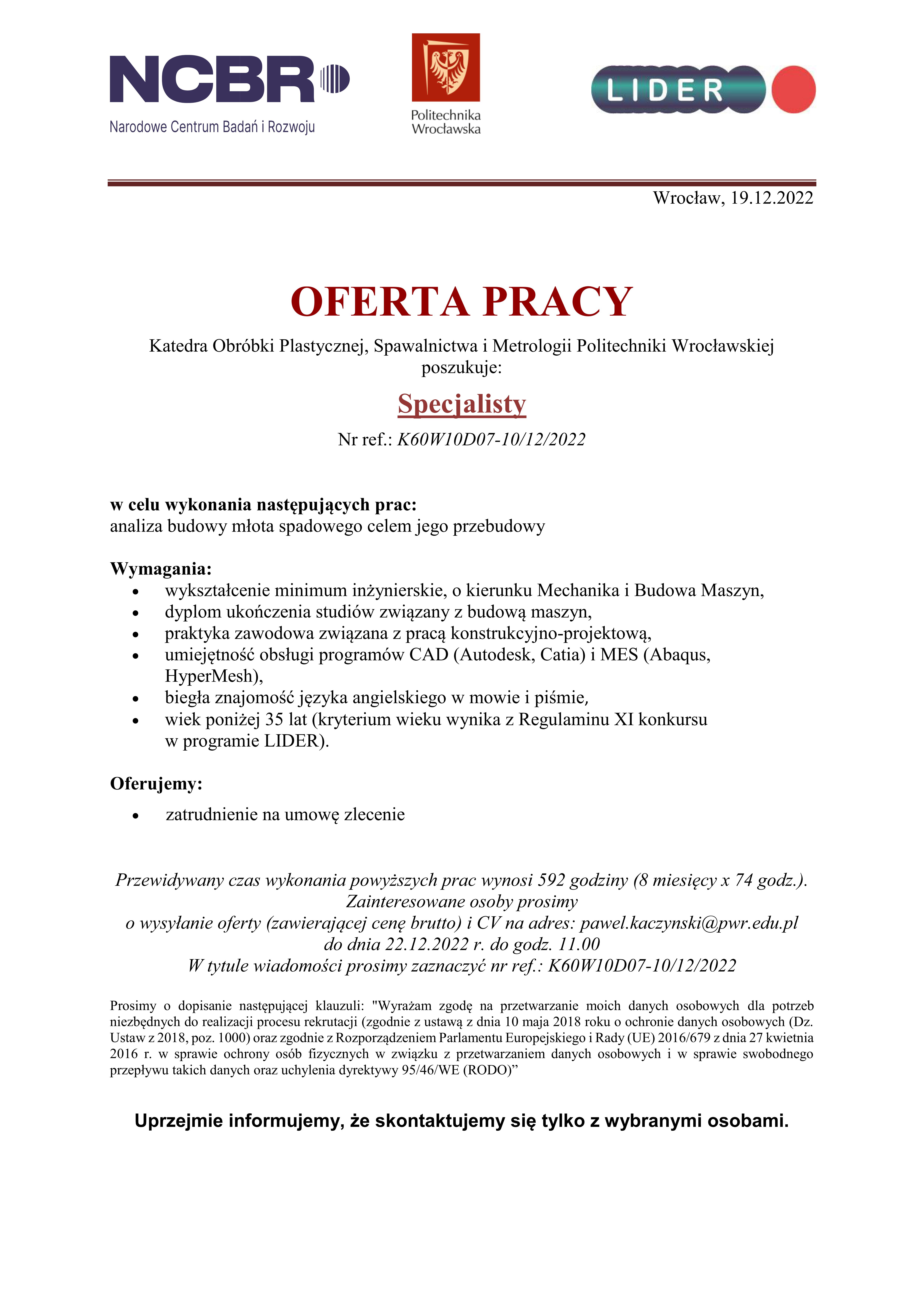 Specjalista - Nr ref.: K60W10D07-10/12/2022