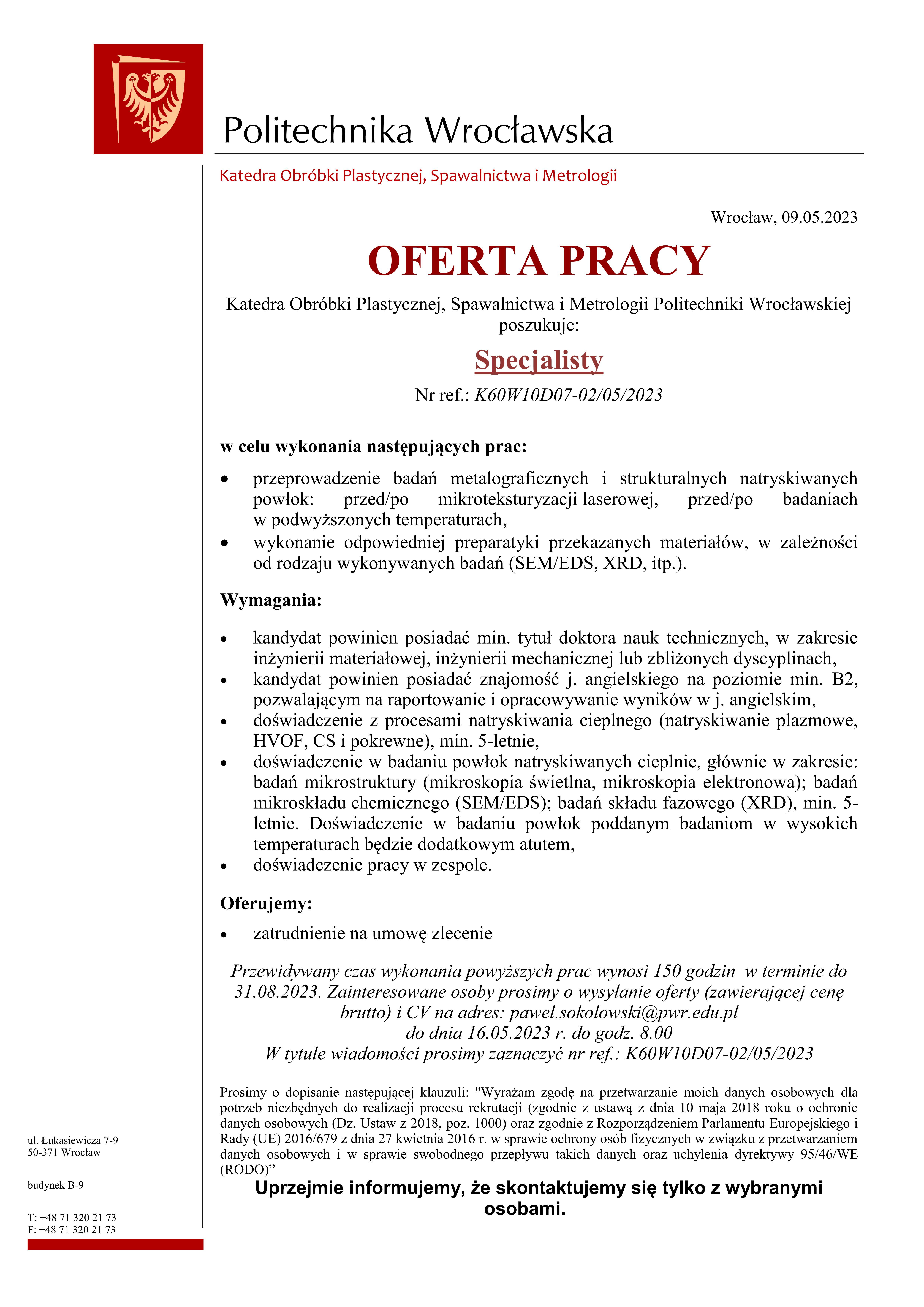 Specjalista - Nr ref.: K60W10D07-02/05/2023