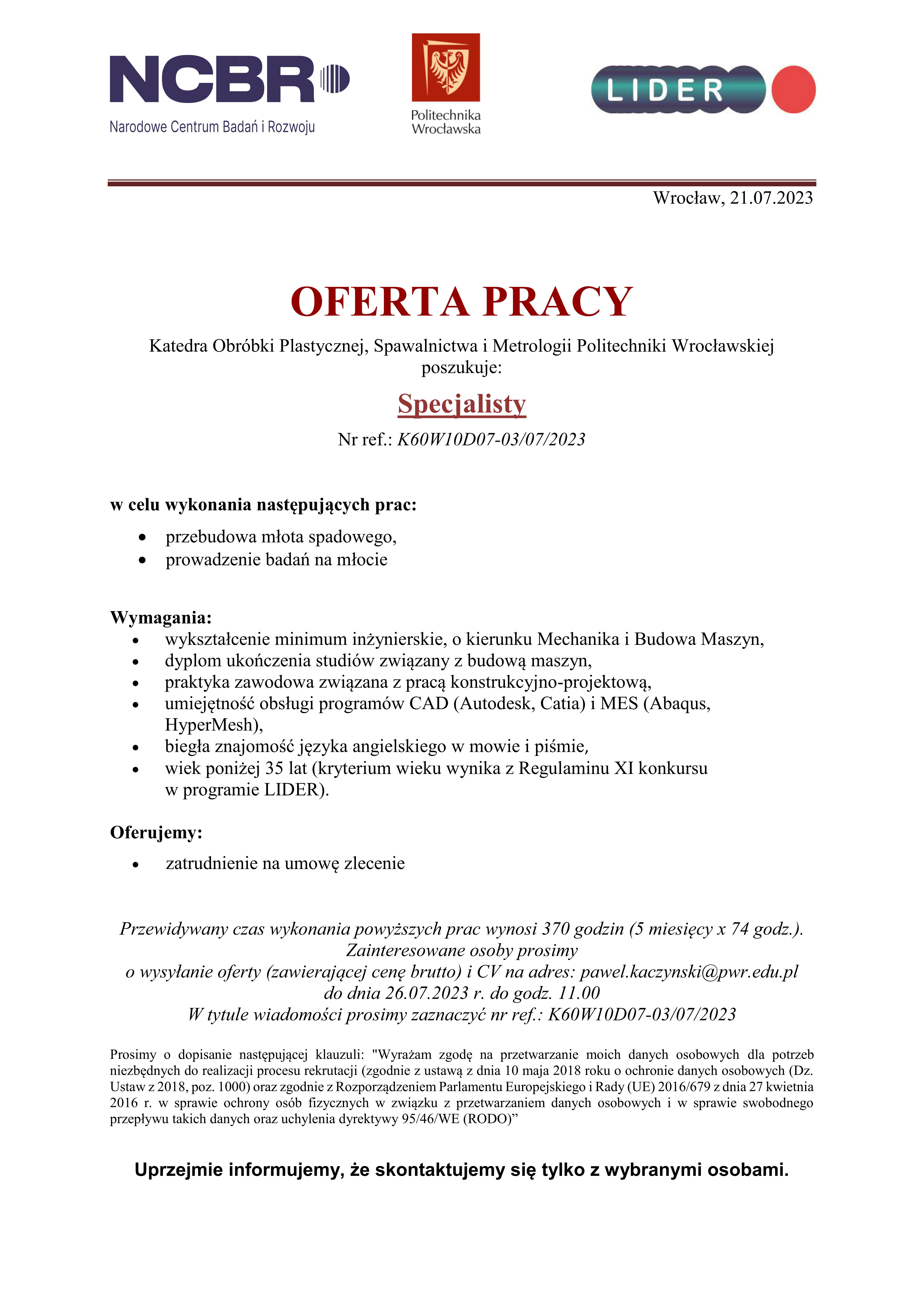 Specjalista - Nr ref.: K60W10D07-03/07/2023